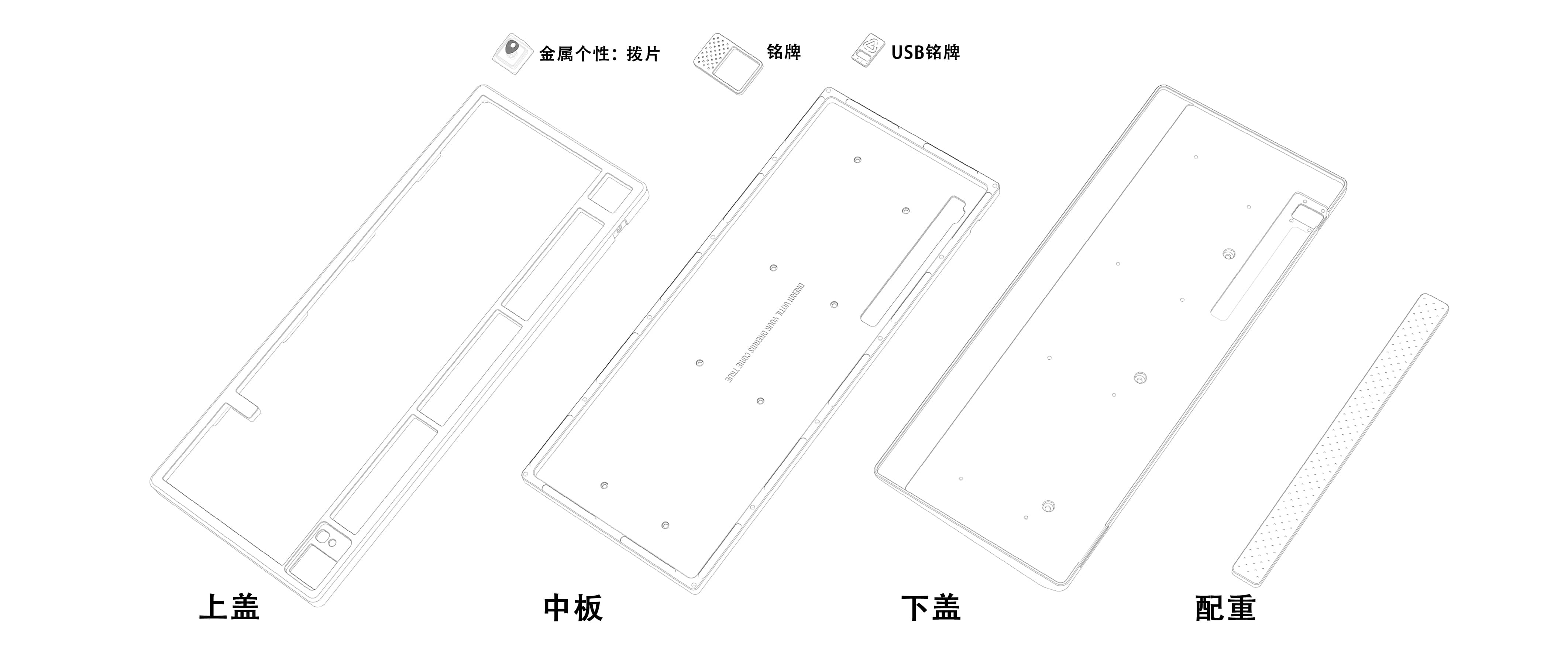 Quicksilver 银色外壳/灰色中板/黑色铭牌/黑色USB铭牌/黑色配重